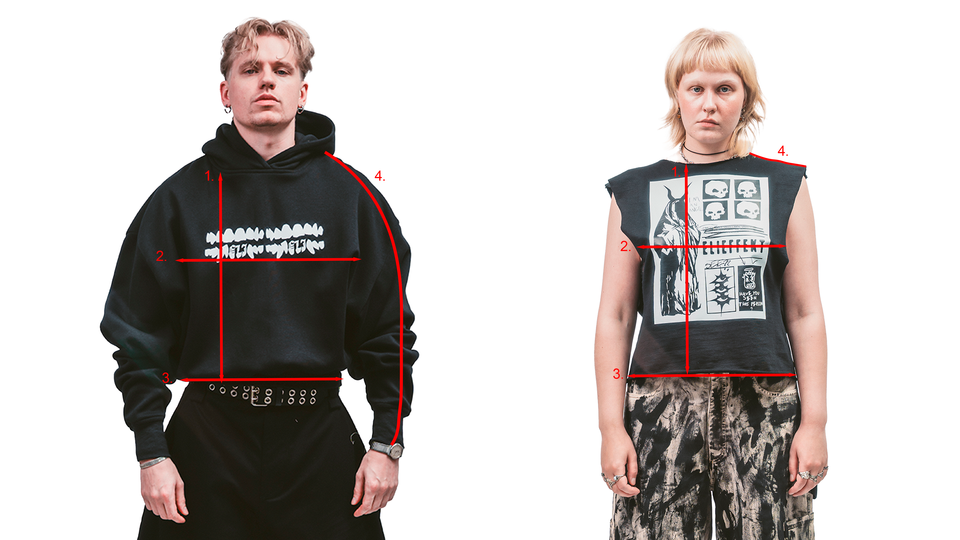 This guide applies to ELIEFFEKT garments only. This is not a guide how to measure yourself, since every piece we make is one of one and sizing is as unique as every piece. Sizes listed in the product description tells you the true size of the garment and this explains how it has been measured. You can always grab your favourite hoodie or pair of pants and compare the sizing to your garment to vision better the life-size of the garment.